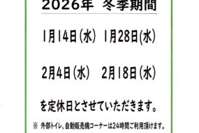 お知らせ2026年01月04日【冬季定休日のお知らせ】